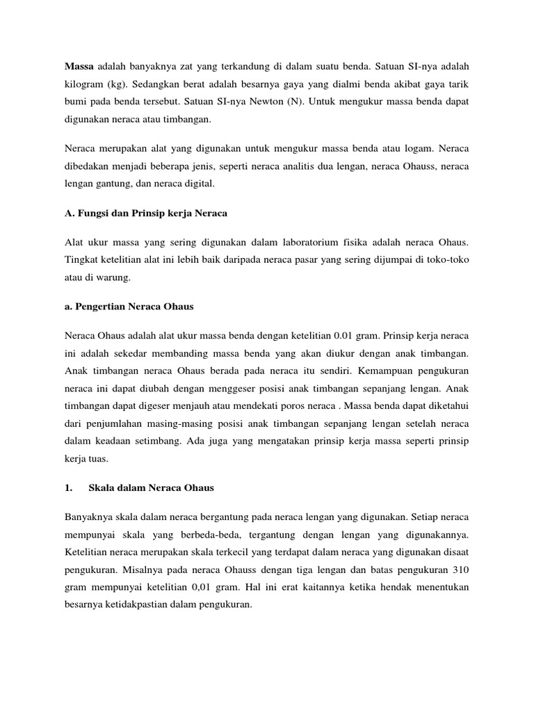 Alat Ukur Panjang from imgv2-2-f.scribdassets.com Untuk lebih jelasnya, lihat konversi satuan massa yang ada di dalam matematika yang lain agar memudahkan kalian semua dalam memahami materi ini. Timbangan digunakan untuk mengukur massa benda. Perhatikan beberapa alat ukur berat berikut ini. Prinsip kerjanya adalah keseimbangan kedua lengan, yaitu keseimbangan antara massa benda yang diukur dengan anak timbangan yang digunakan. Jun 18, 2021 · berfungsi untuk mengukur satuan panjang, alat yang digunakan adalah roll meter, penggaris, jangka sorong, mikrometer sekrup, welding gauge (untuk dimensi pengelasan). Dalam dunia pendidikan sering digunakan neraca o'hauss tiga lengan atau dua lengan. Nov 17, 2019 · sedangkan, ton biasanya akan digunakan untuk mengukur berat sebuah benda yang lebih berat atau benda dalam jumlah yang banyak, seperti beras, besi dan lainnya. Digunakan untuk mengukur besar kecil suhu ruangan, untuk alat yang digunakan berupa termometer (termogun, termometer resistensi, termometer digital, bimetal.
